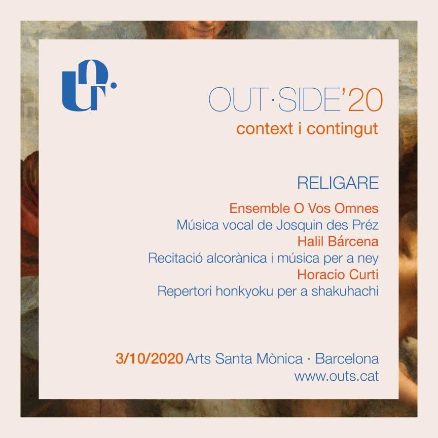 El concert Religare proposa la programació de tres tradicions culturals diferents que reflecteixen tres maneres d’aproximar-se a la música religiosa i a l’espiritualitat: la música renaixentista coral de Josquin des Prés, les recitacions coràniques i la música per a shakuhachi del repertori honkyoku, pràctica sonora vinculada al budisme zen. Una selecció de luxe conformarà el concert: el grup vocal O vos omnes, la principal formació vocal catalana dirigida per Xavier Pastrana; Halil Bárcena, especialista en estudis sufís i intèrpret de ney i Horacio Curti, mestre shakuhachi i etnomusicòleg. El concert és d’entrada gratuïta. L’entrada es pot reservar a l’adreça artssantamonica@eurotomb.com o al tel. 935671110Ensemble O Vos Omnes · Música vocal de Josquin des Préz: